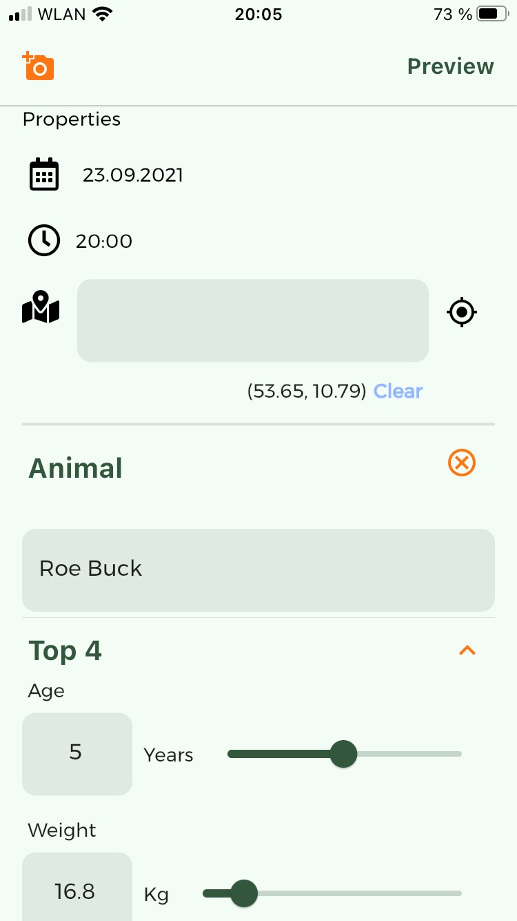 You can add up to 5 photos to your hunting experience. When creating your diary, you can enter all the important characteristics of your hunting experience, from the location, type of animal to the phase of the moon. If you had a good hunt, you can directly document more than just one animal.