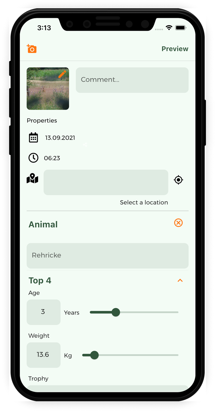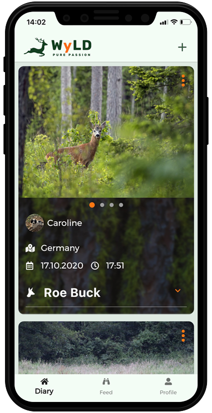 With just one click, your hunting experience will be shared in your hunting community. Only the associated pictures, game species, date, time and a comment written by you will be shown on the app. With regards to the location, you can decide yourself whether it should be shared or not. Therefore, your hunting diary remains private for you.